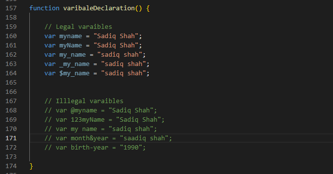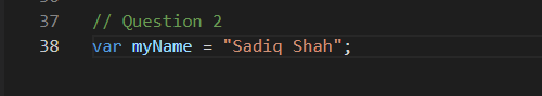 Declare a variable called myName & assign to it a string that represents your Full Name.